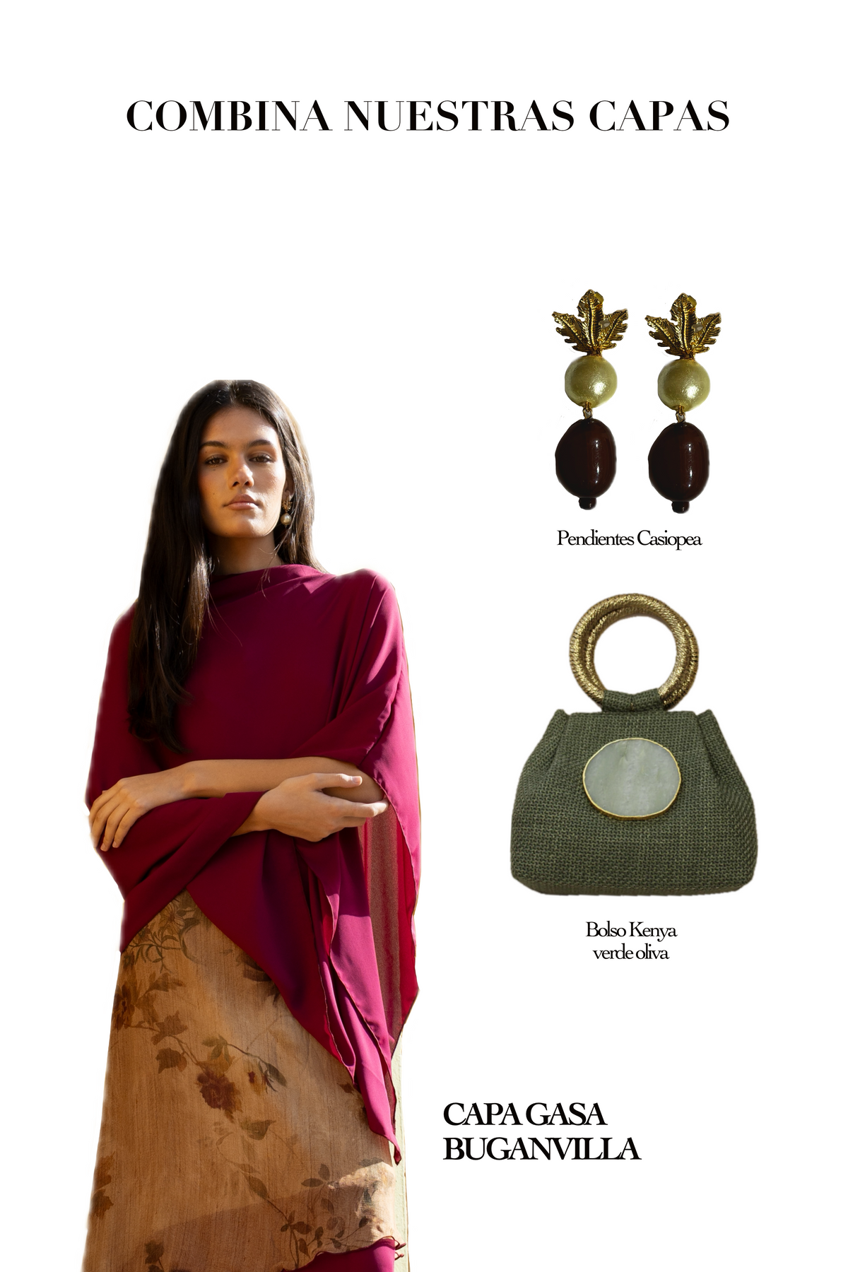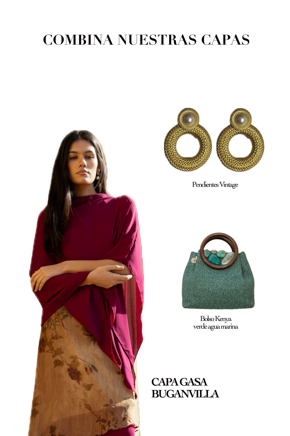 Elegantísima capa de gasa, de estilo minimalista en tono buganvilla, confeccionado en tela ligera con caída suave. Diseño amplio y versátil que aporta comodidad y sofisticación, ideal para usar sobre blusas o vestidos en climas templados. Combina fácilmente con prendas neutras para lograr un outfit refinado y actual.
