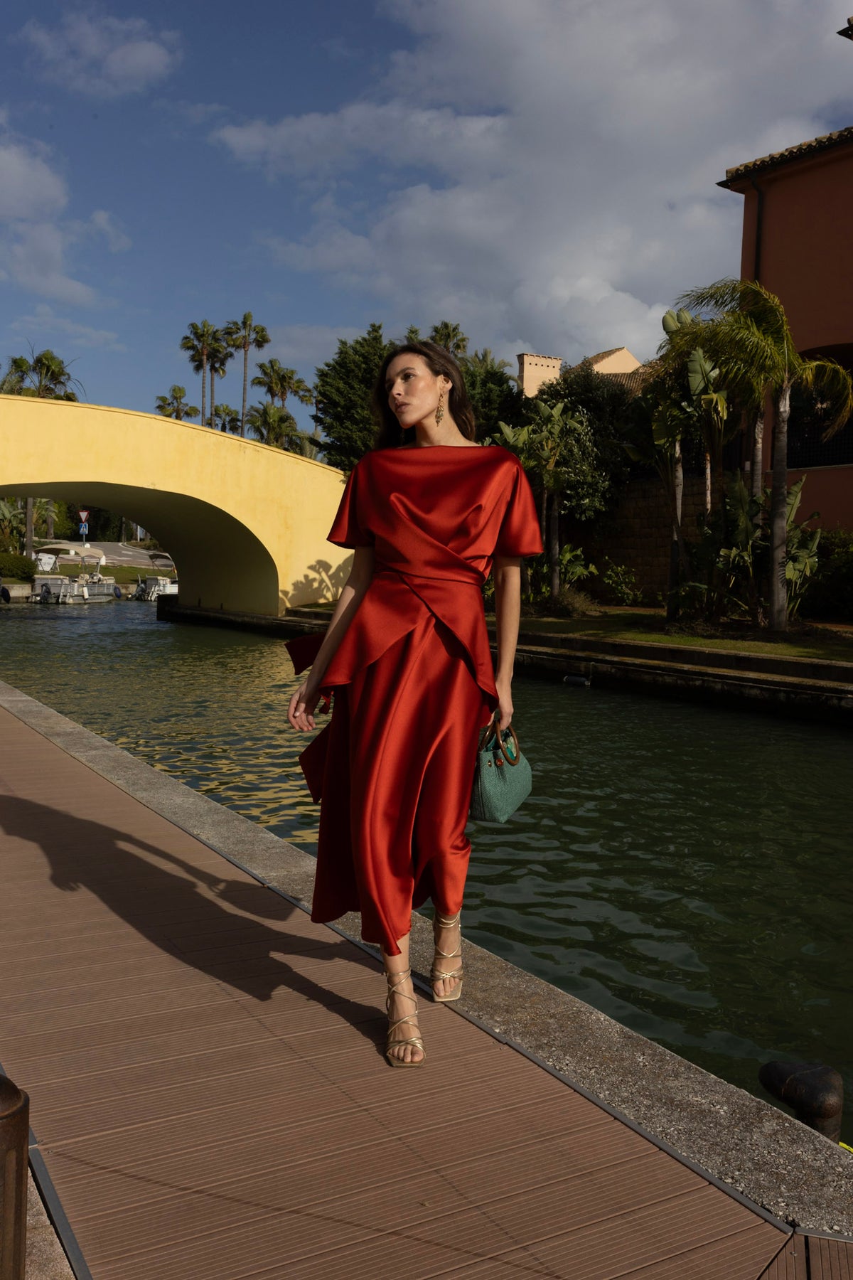 • Made from exquisite satin, we bring you this laminated corset in gold colour. The back zip makes it easy to put on and take off. In addition, that slight peplum effect at the waist gives it a special and flattering touch, as if it were floating on the skirt.